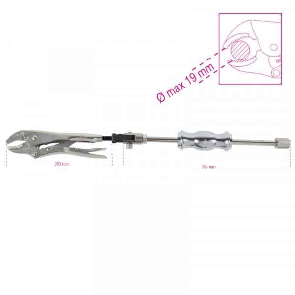 La pince étau autobloquante avec masse à inertie de 1 kg est idéale pour extraire les goujons, les vis cassées, les axes de charnière de porte, de suspension, ainsi que toutes les pièces résistantes qui peuvent être retirées en tirant droit.