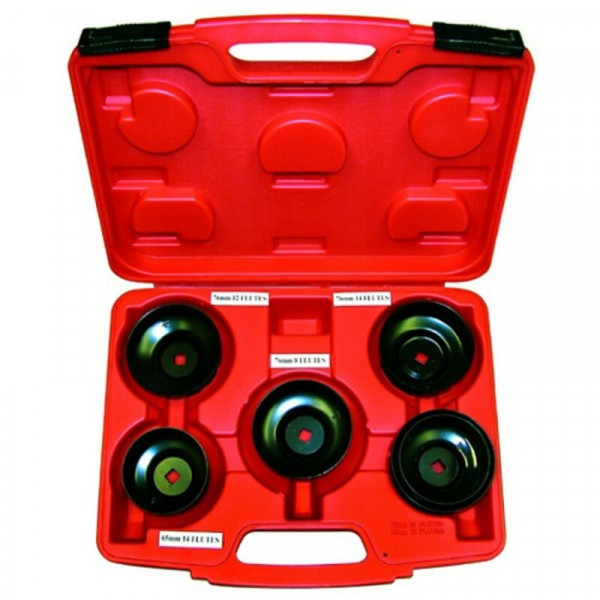 Coffret de 5 cloches à filtre - 6 diamètres :  Ø65mm - 14 pansØ68mm - 14 pansØ80mm - 15 pansØ76mm - 8 pansØ76mm - 12 pansØ76mm - 14 pans