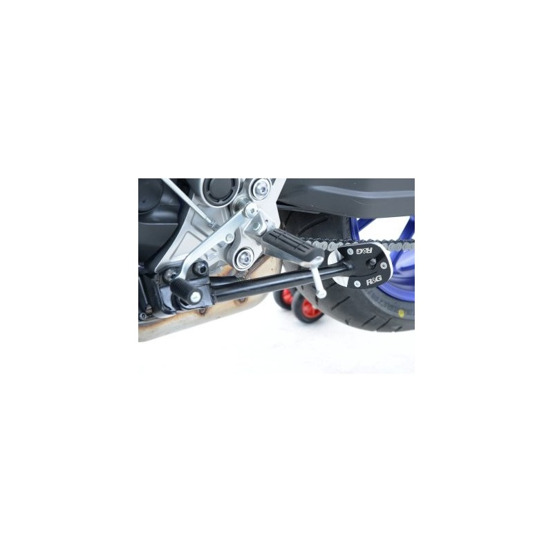 Le patin de béquille latérale R&G permet de doubler la surface au sol de la plateforme de la béquille, et est prévu pour un montage permanent. Il permet de renforcer la stabilité de la moto béquillée, notamment sur terrains non stabilisés.