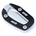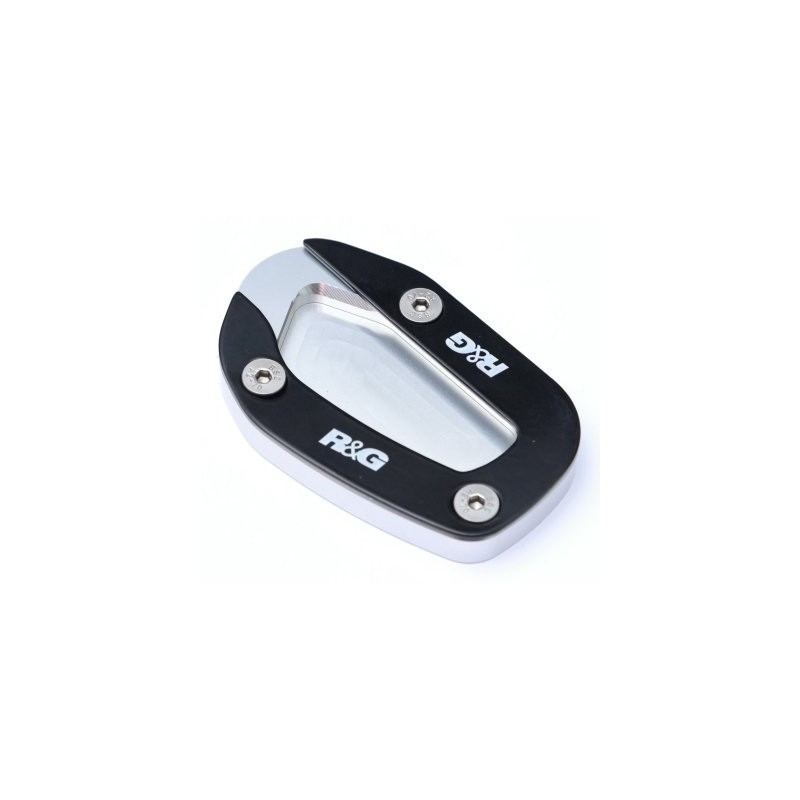 Le patin de béquille latérale R&G permet de doubler la surface au sol de la plateforme de la béquille, et est prévu pour un montage permanent. Il permet de renforcer la stabilité de la moto béquillée, notamment sur terrains non stabilisés.
