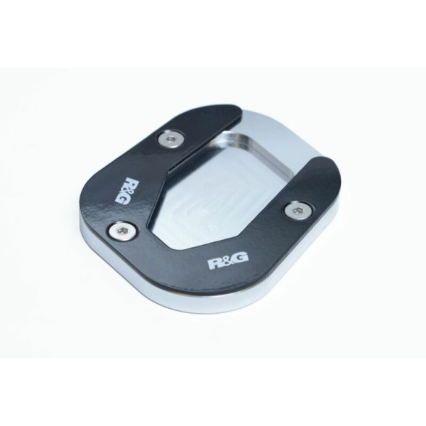 Le patin de béquille latérale R&G permet de doubler la surface au sol de la plateforme de la béquille, et est prévu pour un montage permanent. Il permet de renforcer la stabilité de la moto béquillée, notamment sur terrains non stabilisés. Patin de béquille Fixation en 3 points : pinçage de la plateforme de la béquille Platine en aluminium – partie supérieure en inox Anti-corrosion Pour montage permanent : pas de contact avec le bras oscillant, chaine, …