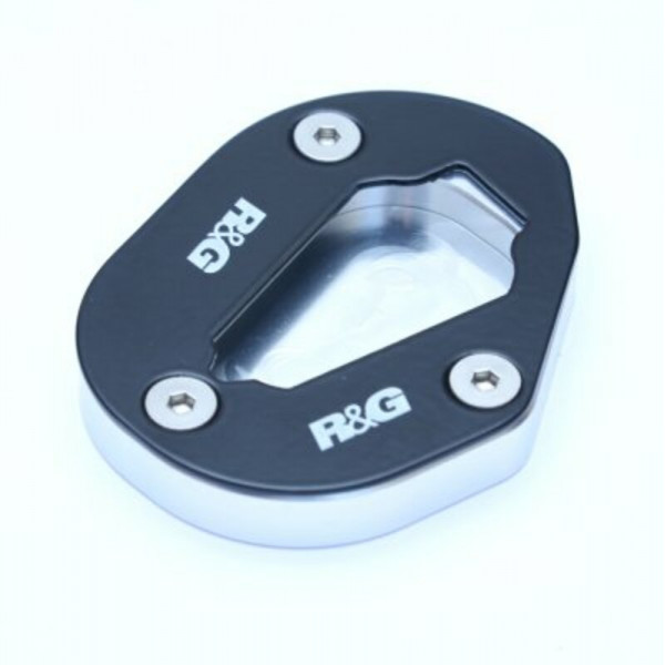 Le patin de béquille latérale R&G permet de doubler la surface au sol de la plateforme de la béquille, et est prévu pour un montage permanent. Il permet de renforcer la stabilité de la moto béquillée, notamment sur terrains non stabilisés. Patin de béquille Fixation en 3 points : pinçage de la plateforme de la béquille Platine en aluminium – partie supérieure en inox Anti-corrosion Pour montage permanent : pas de contact avec le bras oscillant, chaine, …