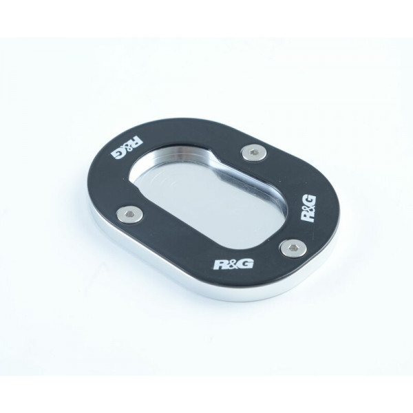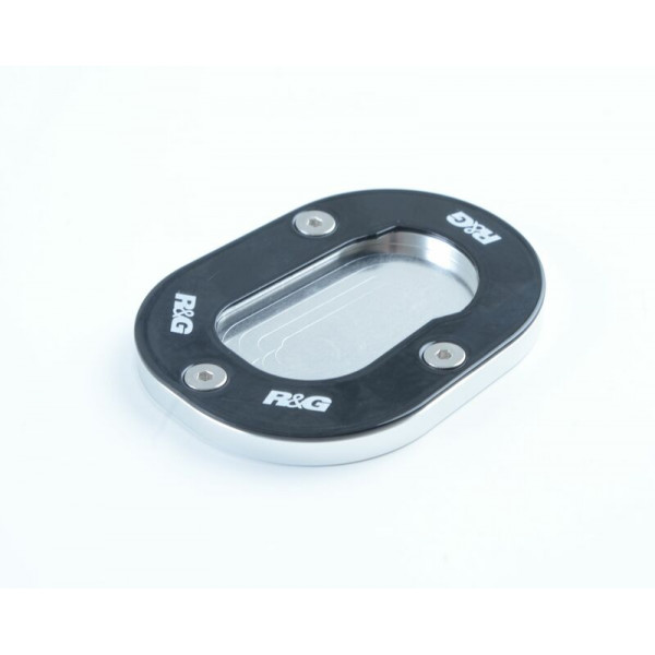 Le patin de béquille latérale R&G permet de doubler la surface au sol de la plateforme de la béquille, et est prévu pour un montage permanent. Il permet de renforcer la stabilité de la moto béquillée, notamment sur terrains non stabilisés. Patin de béquille Fixation en 3 points : pinçage de la plateforme de la béquille Platine en aluminium – partie supérieure en inox Anti-corrosion Pour montage permanent : pas de contact avec le bras oscillant, chaine, …