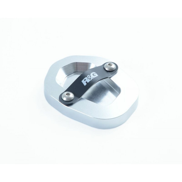 Les patins de béquille R&G Racing se vissent sur votre béquille d’origine et doublent la surface d’appui, pour éviter l’enfoncement dans le sol. Malgré sa taille plus importante, la garde au sol et la ligne de chaine ne sont pas affectées dans des conditions normales de conduite.  Fixation par pincement de la plateforme de la béquillePatin fabriqué sur mesure pour chaque véhiculePartie basse en aluminium – partie supérieure en inoxMontage facile et rapide
