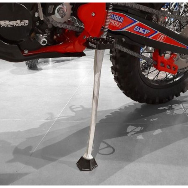 Base augmentée et relevée pour empêcher la béquille de s'enfoncer et maintient la moto incliné