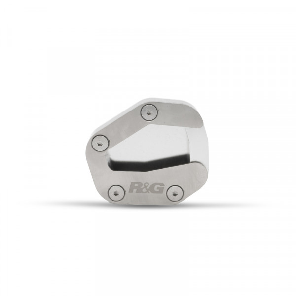 Les patins de béquille R&G Racing se vissent sur votre béquille d’origine et doublent la surface d’appui, pour éviter l’enfoncement dans le sol. Malgré sa taille plus importante, la garde au sol et la ligne de chaine ne sont pas affectées dans des conditions normales de conduite.