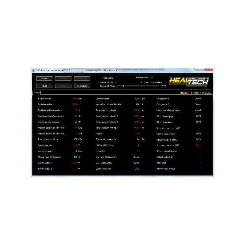Outil permettant d'établir un diagnostique de la panne de votre moto, un defaut au tableau de bord de votre machine ? rien de plus simple il vous suffit de brancher le boitier OBD Healtech a la prise diagnostique de votre moto et celui-ci sera vous informer sur la panne en question.