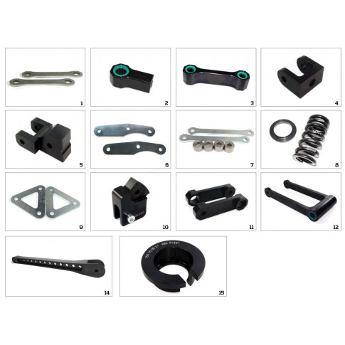 Type : biellette Adapte la hauteur de selle à la morphologie du piloteApporte un meilleur confort et permet des manœuvres plus faciles et plus sûresFabrication en alliage d'aluminiumMontage par un professionnel recommandé