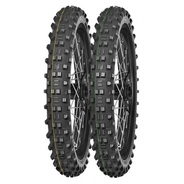 Super Light (Technical Enduro) identifié par la bande verte caractéristique : construction de carcasse légère et souple et composé gommeux, pour une meilleure absorption des obstacles durs et un niveau d'adhérence plus élevé.