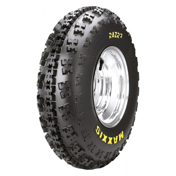 Maxxis RAZR 2 M933 : la référence du pneu sportif encore plus performante Sculpture agressive et partie centrale légèrement bombée Crampons plus épais pour plus de grip plus longtemps Améliore la précision de la direction et la maniabilité du quad Pour la compétition ou le loisir cross et cross-country Pneu Tubeless – Nombre de plis : 6 – Indice de vitesse : 100km/h - Charge maxi : 107kg   Pressions conseillées : Pneu profil Route : pression entre 0,4 et 0,9 Bar Pneu profil Sportif (plat) : pression entre 0,4 et 0,7 Bar Pneu profil Loisir, Piste (arrondi) : pression entre 0,2 et 0,4 Bar Pneu profil Utilitaire : pression entre 0,2 et 0,5 Bar