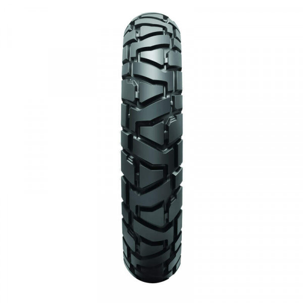Développé pour les pilotes en recherche d'aventure long-courrier, le Trailmax Mission vous permet d'atteindre tous les coins de la planète, et a encore assez de profondeur de bande de roulement pour s'aventurer hors route. Principales caractéristiques  Les blocs de bande de roulement robustes présentent une conception en escalier décalé, une caractéristique qui offre de la rigidité dans la zone de contact, améliorant la stabilité et la maniabilité. Les ergots enveloppants sur le bord du pneu aident à le protéger contre les roches coupantes et à fournir plus de motricité. De nouveaux composés de gommes pour des performances parfaitement équilibrées sur route et tout-terrain, ainsi que des performances de kilométrage inégalées. Les rainures profondes offrent des bords mordants supplémentaires pour des performances hors route. Convient aux machines moyenne et grosse cylindrées les plus populaires, y compris les modèles Honda Africa Twin, Suzuki V-Strom, BMW GS, KTM 1290 / 1290S, 790R / 790S, Yamaha Ténéré, Triumph 800/900/1200 et bien d'autres. Mission offre des performances hors route excellentes, une adhérence suffisante sur route, ainsi qu'une excellente qualité de pilotage et une capacité de charge élevée.