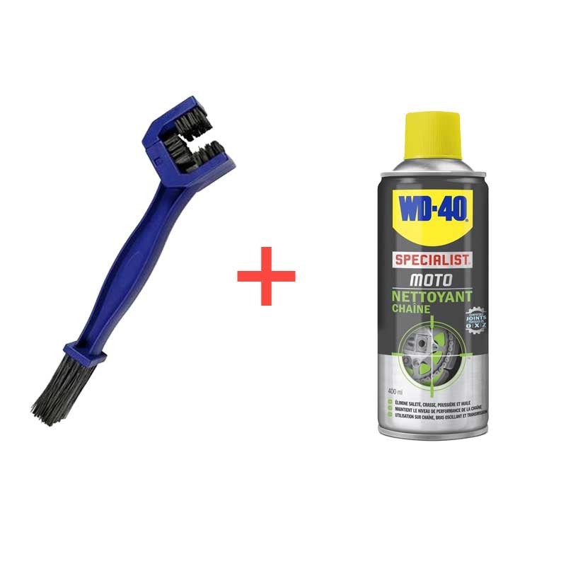 Faites des économies avec notre offre pack nettoyant chaîne, pour une brosse acheté , un nettoyant chain wd-40 de 400ml offert.