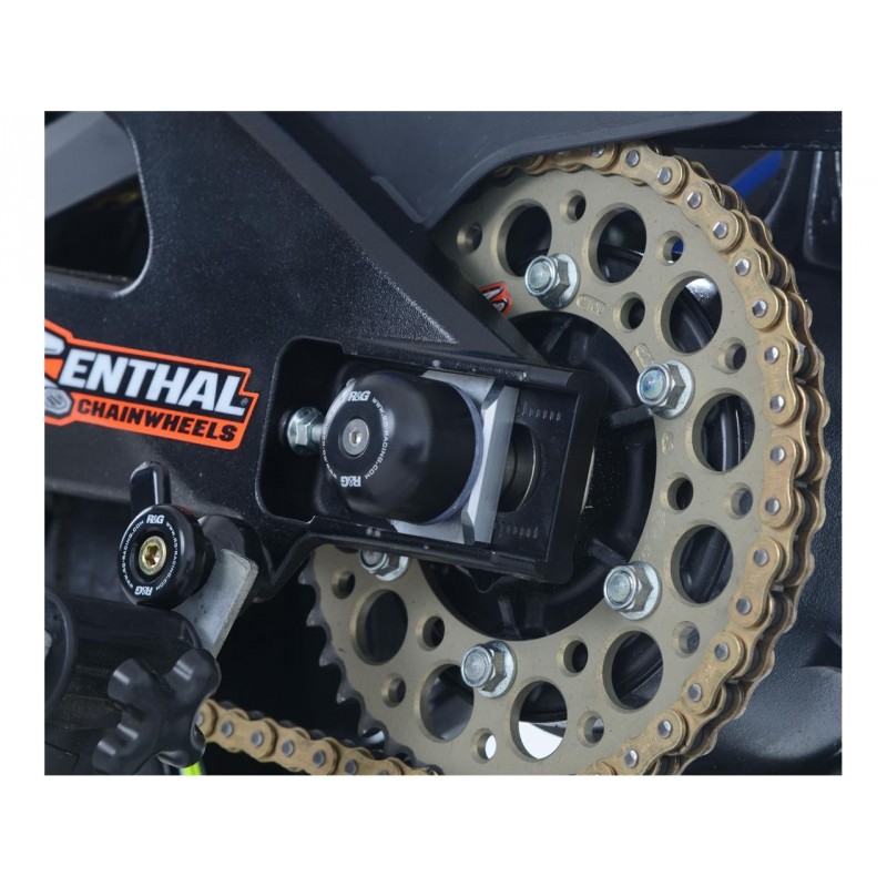 Les protections de bras-oscillant R&G Racing permettent de protéger la partie arrière basse de la moto en cas de chute.