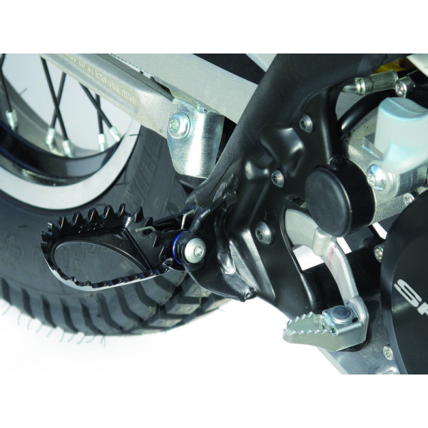 S3 est le spécialiste de la pièce trial et enduro. Innovation et haute qualité sont les maîtres mots guidant la conception des éléments qui feront la différence. Testés dans toutes les conditions, les produit S3 sont à la pointe de la technologie et équipent les meilleurs pilotes et teams trial Fabriqué en acier trempé (SCM415)Plus larges pour une meilleure stabilité et plus bas pour abaisser le centre de gravitéCes repose-pieds sont réglables à l'aide de l'entretoise en aluminium fournieRéglables en 3 positions : Standard En avant de 2,5mm et plus haut En arrière de 2,5mm et plus bas La position avancée est destinée au sections sèches et raides, la position reculée est plus efficace en condition glissante et standard pour avoir un bon compromisLa forme ouverte empêche les reposes pieds de se planter dans les obstacles et d’accumuler la boueLivré en kit avec boulon, entretoises et ressort