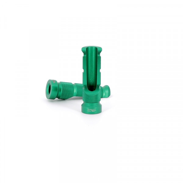 Repose-pieds antidérapants réalisés en aluminium taillé dans la masse et anodisés Livrés par paireSans adaptateur Tous les modèles sont disponibles en finition : RougeOrVertNoirAluminiumTitaneOrangeBleu