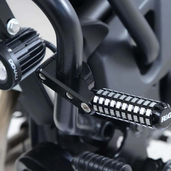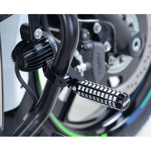 Fixez un jeu de repose-pieds R&G Universal Highway Pegs sur vos crash bars ou autres barres de protection de 1" (25,4 mm) ou de 7/8" (22 mm) et profitez d'un confort de conduite tout au long de la journée ! Le support de serrage sécurisé maintient le repose-pied fermement. Spécialement texturé pour offrir une adhérence fantastique par tous les temps.