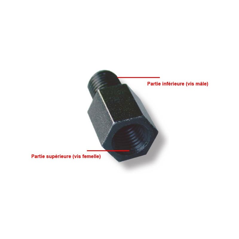 Bien faire attention au diamètre de la partie inférieure (vis mâle) et la partie supérieure (vis femelle) ainsi que le pas en question.