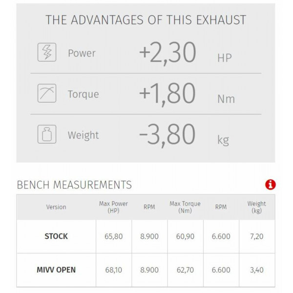 Réalisé pour améliorer l’aspect, le son et les prestations de la moto, le pot slip-on Mivv est issu de l’attention maximale vers le design, en vue de satisfaire ceux qui souhaitent se démarquer aussi par l’allure de leur moto. L’échappement OVAL s’adapte parfaitement à n’importe quel type de moto. Peaufiné dans les moindres détails, c’est une ligne qui représente le meilleur compromis entre design et performances. Tous les modèles sont équipés d’un dB-killer démontable. Caractérisé par un corps et un embout en carbone à haute résistance thermique, l’échappement présente des fentes ouvertes sur l’embout qui donnent au silencieux un design plus sportif.