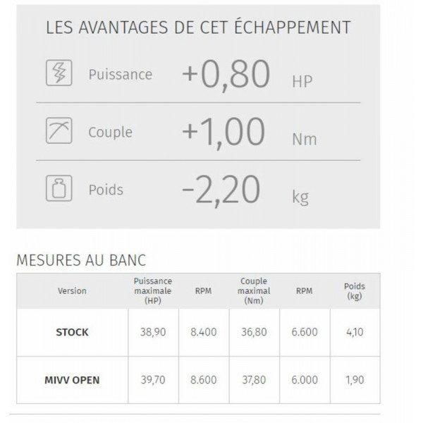 Les dimensions réduites de l’échappement GP inspirées du Moto GP lui confèrent un look très sportif. Le silencieux rond et court, avec un Db killer amovible, optimisent le comportement et le look de votre machine.  Corps rondFinition Steel BlackCasquette biseautée