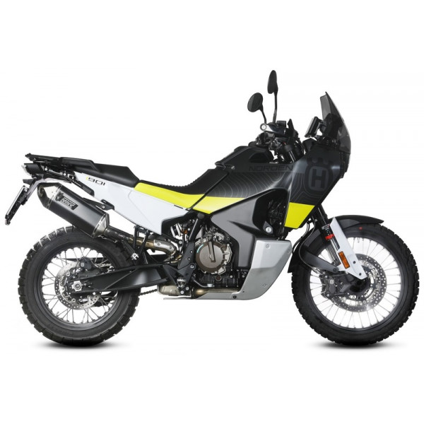 Le corps en acier noir “Black Moon”, l’embout et le collier en carbone, donnent à ce pot un aspect agressif. Le silencieux a forme hexagonale.
