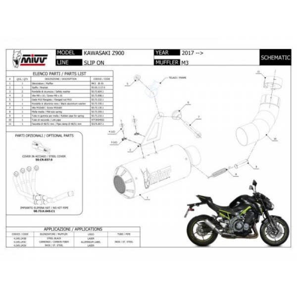 Ce silencieux pour Z900 est fourni avec l’homologation CE (EURO5) et est donc approuvé pour une utilisation sur route. Protection thermique NON incluse.
