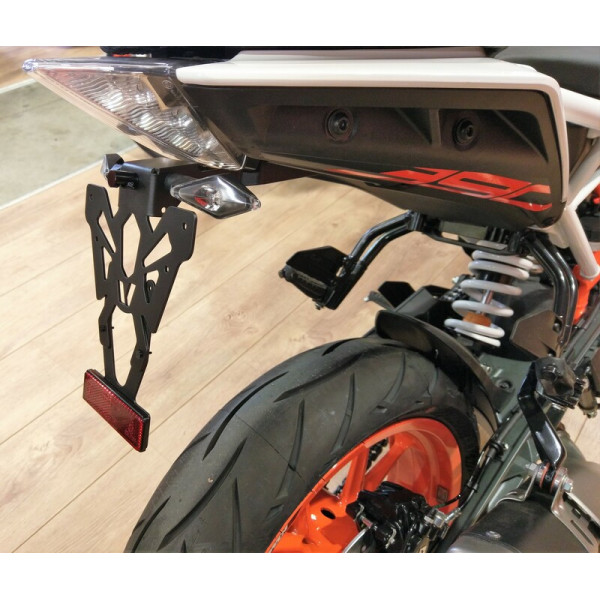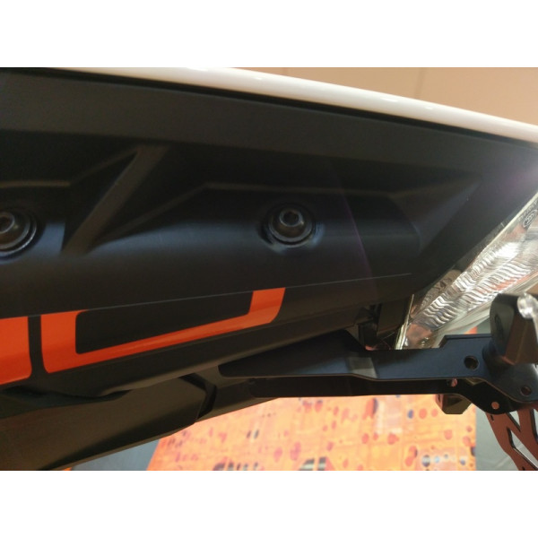 Les supports de plaque V PARTS, discrets et à la finition parfaite, sont développés spécifiquement pour l’application véhicule indiquée.  Support de plaque en acier de 2mm robuste et finPeinture époxy noir mat.Fabriqué par commande numérique – découpe laser : finition précisePermet la fixation de la plaque d’immatriculation européenne internationale, clignotants avec écartement allant de 170 à 220mm et éclairage de plaque aux normes EUFabriqué en France  Livré avec :  Eclairage de plaque homologué aux normes EUSupport de catadioptre réglableCatadioptre aux normes EU