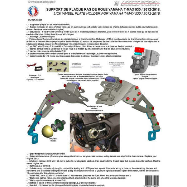 Support de plaque ACCESS DESIGN déporté "ras de roue" noir Yamaha T-Max 530