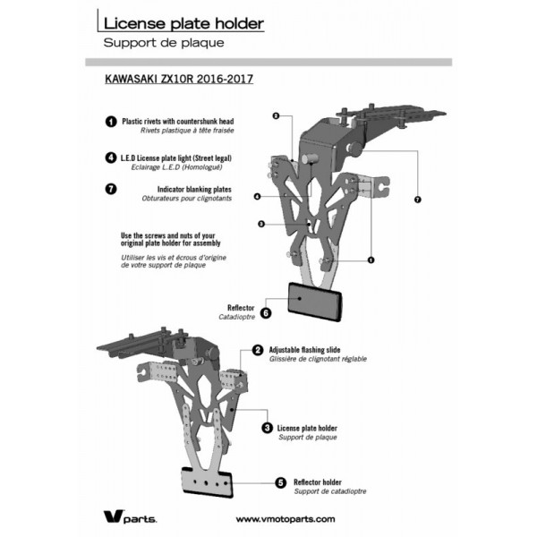 Support de plaque V PARTS noir Kawasaki ZX10R