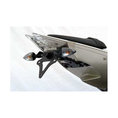Les supports de plaque R&G Racing remplacent le support d'origine et améliorent l’apparence de votre moto.  Fabriqué en inox pour plus de robustesseFinition : thermolaquage pour un meilleur look et une plus grande résistancePermet de conserver les clignotants d'origineMontage sur les points de fixation d’originePerçages requis pour le montage effectuésAvec éclairage de plaque