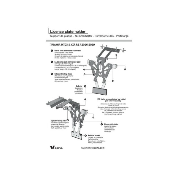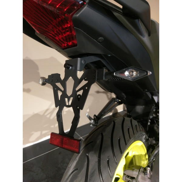 Les supports de plaque V PARTS sont fabriqués en France.Discrets et à la finition parfaite ils sont développés spécifiquement pour l’application véhicule indiquée. Support de plaque en acier de 2mm robuste et finPeinture époxy noireFabriqué sur commande numérique – découpe laser : finition précisePermet la fixation de la plaque d’immatriculation, clignotants et éclairage de plaque.Fabriqué en France  Livré avec : Eclairage de plaque homologué aux normes EUSupport de catadioptre réglableCatadioptre aux normes EU  Les plus : Passage des câbles optimisé et discretConception spécifique pour un montage rapideSupport de clignotant réglableAdapté aux plaques EUEcartement clignotants de 170 à 220mm