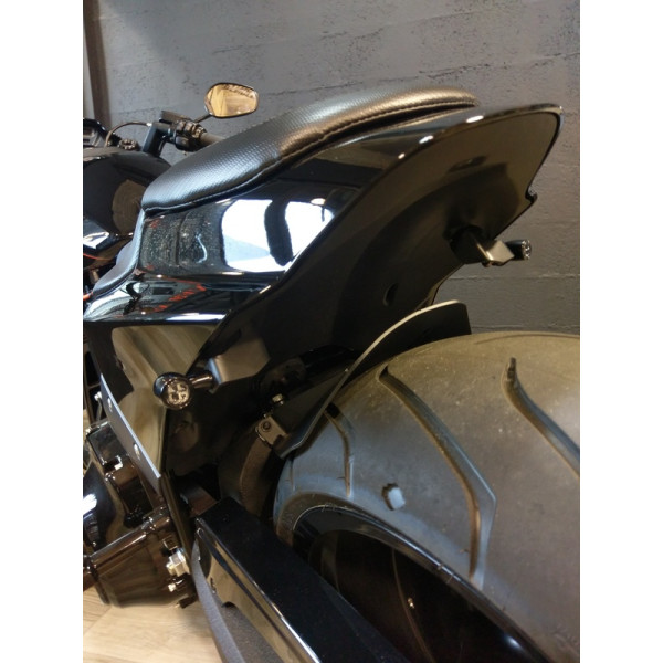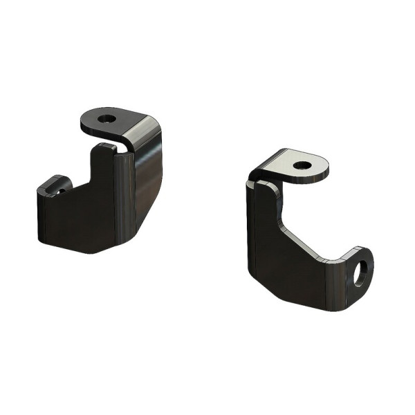Le kit de fixations est en acier d'épaisseur 3mm revêtu d'une peinture époxy noir mat.Il permet le montage des feux stops clignotants intégrés (321289 et 321290) sur l'emplacement de la coque arrière et des vis d'origines.
