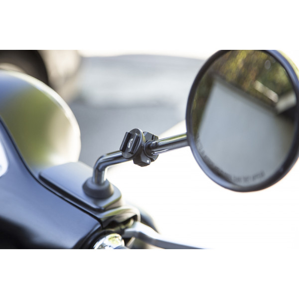 Pack complet SP-CONNECT Moto Bundle fixé sur rétroviseur iPhone 8+/7+/6S+/6+