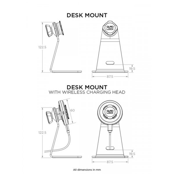 Le support de bureau Quad Lock® est un ajout élégant à la gamme Quad Lock® et est parfait pour la maison ou le bureau.